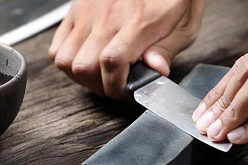 Точильные камни рекомендуется перед началом работ смачивать водою, чтобы они не засорялись металлической стружкой и не царапали лезвие. Точить следует плавными движениями, плотно прижимая нож к абразивной поверхности, но без сильного надавливания. Направление проводки всегда должно быть перпендикулярным режущей кромке. Повторять движения нужно до образования на обратной стороне небольшого заусенца. После этого, переверните клинок и заточите другую сторону.
