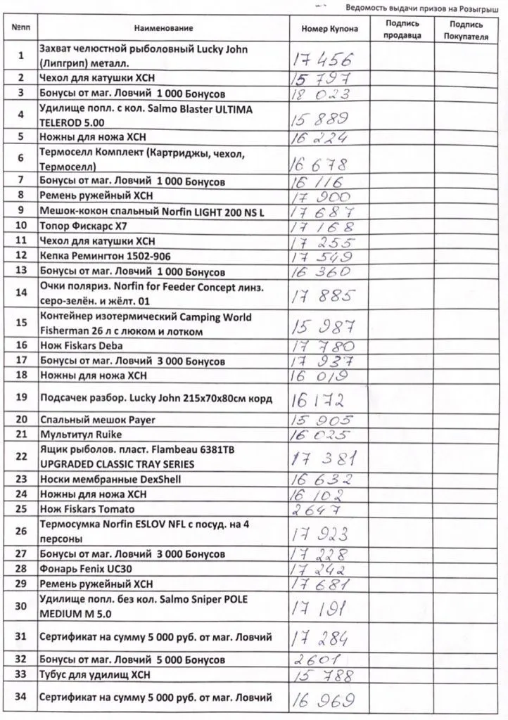 Магазин товаров для охоты и рыбалки «Ловчий» провел розыгрыш в честь своего 10-летнего юбилея. Согласно условиям акции, на ценные призы могли рассчитывать все покупатели розничного и интернет-магазина «Ловчий», приобретя товары на сумму свыше 200 рублей. В розничном магазине клиентам выдавался Кассовый чек с номером Купона участника. В интернет-магазине участникам акции выдавалась Реализация товаров, номером для розыгрыша являлся номер документа Реализации. Акция проходила в период с 01 по 21 августа 2019 года. Розыгрыш подарков состоялся 21 августа 2019 года в 12-30 в магазине «Ловчий».