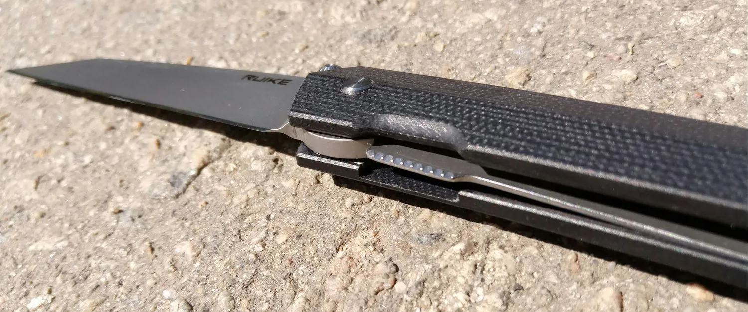 Для фиксации клинка в открытом положении ножа конструкторы компании Ruike применили обыкновенный замок Liner-lock, Этот механизм проверен временем и хорошо зарекомендовал себя, ведь он выдерживает даже самые серьезные нагрузки, устойчив к загрязнениям и предельно прост в управлении.