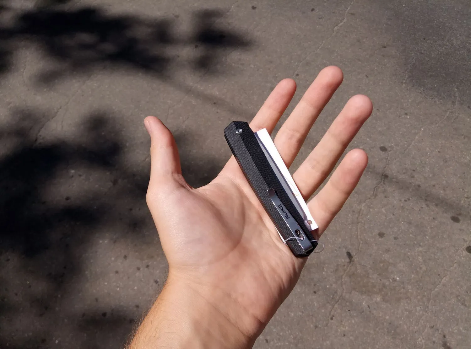 Ruike P865-B обладает всеми необходимыми для EDC-ножа качествами. Он прочен, имеет клинок из нержавеющей стали который неплохо режет и способен прокалывать большинство материалов, хорошо лежит в ладони и не скользит, а также обладает достаточно скромными габаритами и весит всего лишь 70 грамм.