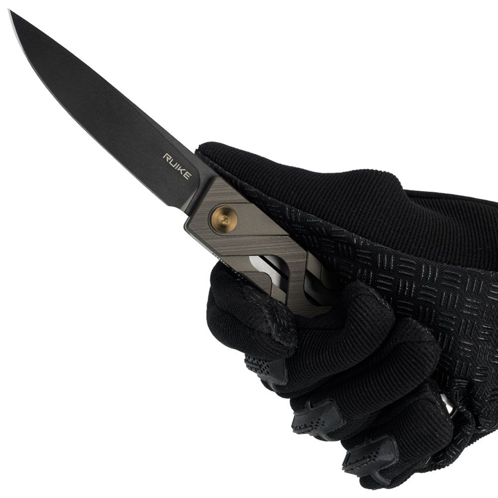 Клинок складного ножа Ruike P878-AK выполнен из шведской стали 14C28N, закаленной до твердости 57~59 HRC. Благодаря оптимальному химическому составу эта марка стали сочетает высокую твердость с отличной устойчивостью к коррозии, что позволяет надолго сохранить остроту лезвия. При этом материал обладает легкостью в заточке и долговечностью.
